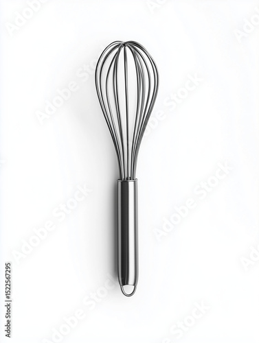 Stainless steel wire whisk isolated on white background. Perfect for cooking visuals, kitchen product cards, and food accessory branding