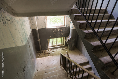 Staircase in abandoned house of soviet ghost town Chernobyl-2