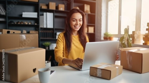 Start up of enterprise small business owner at the workplace. small business entrepreneur SME or freelance working with a box at home. to deliver to customers. Online selling, e-commerce