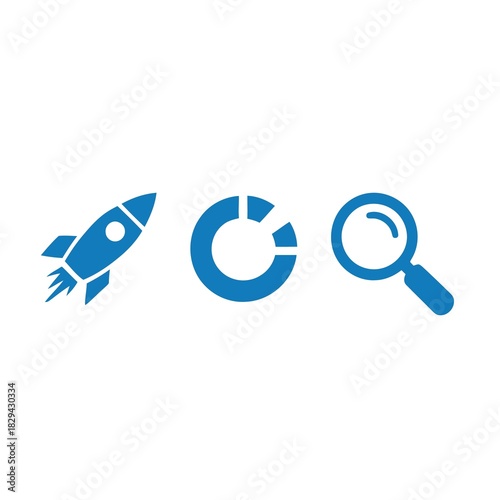 startup, rocket, pie chart, datum, analysis, magnifying glass, search, business, growth, success, vector, illustration, isolated, concept, finance, technology, research, market, strategy, symbol, icon, design, diagram, graphic, element, development, explore, investigate, discovery, exploration
