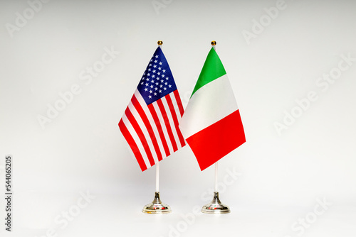State flags of the USA and Italy on a light background.