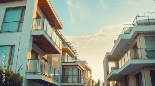 Stately modern apartments with glass balconies stand against a blue sky, epitomizing luxury and contemporary urban living.