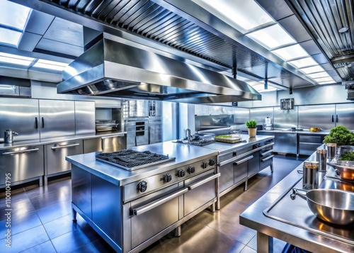 State-of-the-art commercial kitchen featuring advanced smoke and fume filtration, efficient airflow, and a stylish design, creating an optimal culinary workspace for professional chefs.