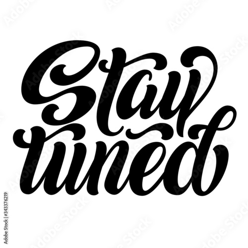 Stay tuned hand lettering, brush script calligraphy isolated on white background. Vector type illustration.