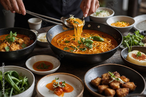 noodle, vegetable, meat, steam, food, meal, dinner, lunch, asian, sharing, communal, warm, delicious, tasty, spicey, broth, soup, bowl, plate, comfort, cosy, gathering, festive, tradition