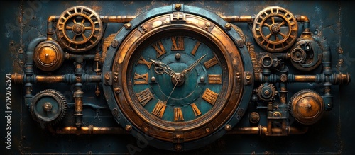 clock, gear, vintage, time, mechanism, design, antique, metal, blue, bronze, wall, decor, craftsmanship, art, technology, industrial, ornate, face, numeral, hand, machinery, retro, aesthetic, functionality, precision, engineering, creativity, style, surface, patina, detail, circular, arrangement, symmetry, hardware, elegance, atmosphere, mechanical, artistry, unique, structure, decoration, visual, object, home, interior