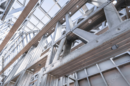 architecture, industry, industrial, construction, building, design, unfinished, roof, metal, material, iron, infrastructure, warehouse, engineering, framework, construction site, blue, structure, site, structural, strength, truss, urban, sturdy, support, builder, assembled, beam, construction industry, bolt, girder, project, copy space, girder, part of, crossbeam, skeleton, evening, frame