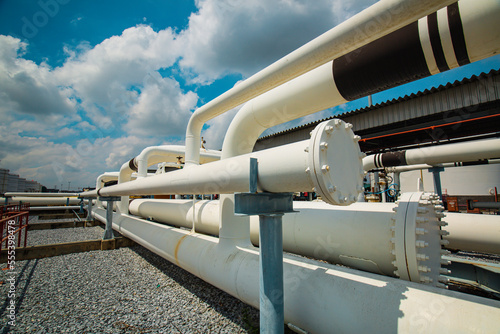 Steel long pipes and pipe elbow in station oil factory during refinery Petrochemistry industry