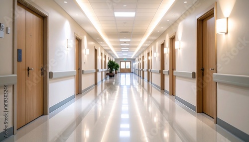Sterile Hospital Corridor: Clean, Bright, and Calm