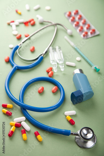 stethoscope, pill, medicals, medicine, health, emergency, clinical, capsule, antibiotic, asthma, blue, cardiology, care, chemistry, clean, closeup, colourful, make well, device, diagnosis, diagnostic, disease, drug, equipment, green, heal, hospital, ill, disease, inhaler, instrument, listen, measurement, metal, pain, pharmaceutical, pharmacy, prescription, prevention, professional, pulse, red, research, scientific, sick, disease, tablet, test, tool, treatment