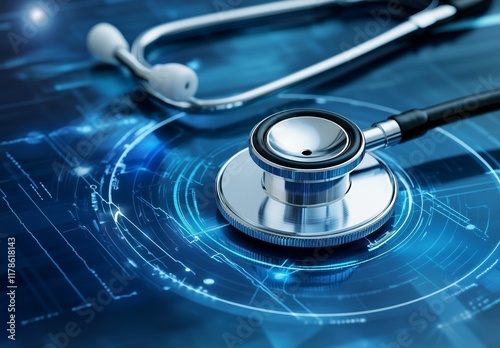 Stethoscope on a blue background with copy space for text, a medical healthcare concept