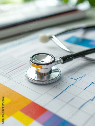 Stethoscope on colorful medical chart in a bright healthcare setting