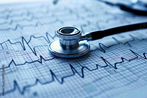 Stethoscope on electrocardiogram ECG, medical healthcare, cardiology concept