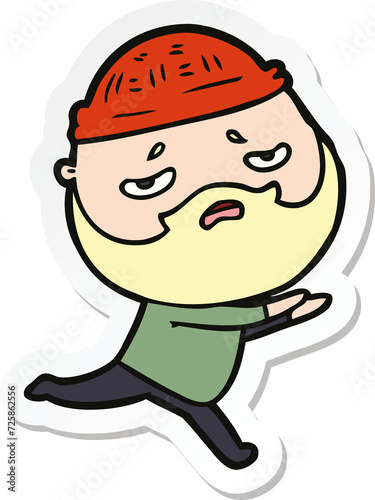 bearded, man, male, cartoon, sticker, stick, on, icon, decal, label, drawing, illustration, retro, doodle, freehand, free, hand, drawn, quirky, art, artwork, funny, character, people, worried, beard