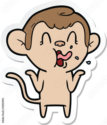 crazy, monkey, animal, zoo, cartoon, sticker, stick, on, icon, decal, label, drawing, illustration, retro, doodle, freehand, free, hand, drawn, quirky, art, artwork, funny, character