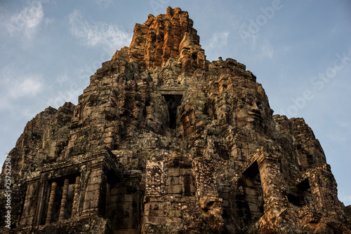 Stone heads at Bayon, Angkor Thom temple, Angkor Wat complex, Siem Reap, Cambodia.