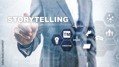 Storytelling. Story Telling Financial Business concept. Abstract blurred background.