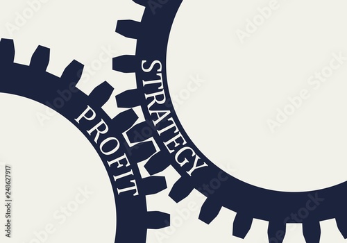 Strategy and profit text on the Mechanism of Gears. Communication Concept in Industrial Design. Modern brochure design template
