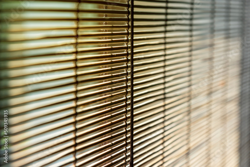 Straw blinds close-up with differential focus.