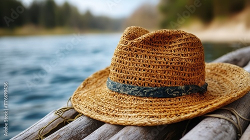 hat, straw, summer, river, water, nature, travel, vacation, relaxation, calm, serene, peaceful, scenic, landscape, background, sun, beach, holiday, tour tourism, journey, adventure, explore, discovery, freedom, calmness, escape, rest, leisure, style, fashion, accessory, woven, texture, craft, hand-made, rustic, vintage, elegant, simple, detail, element, design