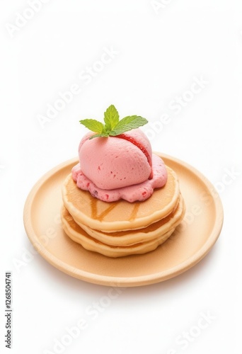 Strawberry Ice Cream on Pancakes with Mint Leaves