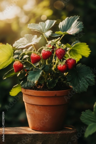 Strawberry plants in pots, AI generated Image