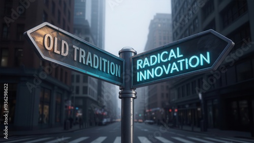 innovation, tradition, modern, city, street, signs, direction, change, progress, business, decision, choice, urban, contrast, technology, future, growth, development, transformation, evolution, strategy, leadership, forward, thinking, creative, disruption, revolution, dynamic, vibrant, energy, modernity, light, neon, signage, path, crossroad, dilemma, opportunity, challenge, new, latest, popular, most, high-quality, unique