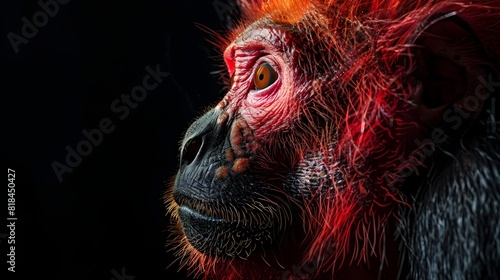monkey, primate, wildlife, nature, animal, face, red, black, contrast, exotic, rainforest, brazil, amazon, mammal, portrait, fur, eye, nose, beard, unique, strange, bizarre, character, expression