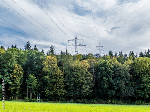 pylon, stream, energy, pylon, cloud, electricity, cloudy sky, cloudy, tree, countryside, field, infrastructure, duct, high voltage, cable, technology, power plant, engineering, line, we