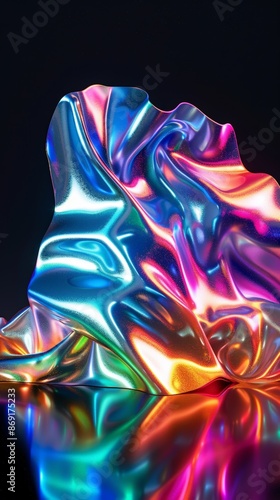 Studio shot of 3D solid fluid holographic object with pastel tones on black background