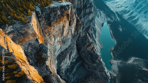 nature, landscape, cliff, water, drone, aerial, mountain, serene, view, beauty, outdoors, photo, travel, adventure, exploration, breathtaking, scenery, wildlife, peaceful, elevation, environment, scenic, natural, panorama, wilderness, hiking, sunlight, calmness, vacation, topography, geology, remote, majestic, vista, colours, earth, sky, visual, inspiration, landform, peace, escape, tranquil