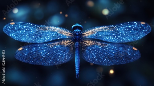 dragonfly, blue, glowing, wing, nature, insect, beauty, macro, wildlife, closeup, vibrant, delicate, aethereal, fantasy, shimmer, colourful, luminescent, fauna, detail, flight, summer, magical, serene, peaceful, environment, art, photo, artistic, illumination, texture, pattern, elegance, motion, wingspan, species, biodiversity, enchanting, natural, exploration, discovery, wonder, atmosphere, calmness, light, high-coloured