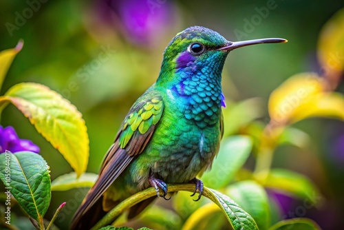 Stunning Green Violet Eared Hummingbird in Mexico's Central Mountains - High Depth of Field Photography