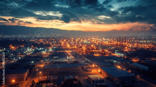 city landscape, dusk, skyline, industrial, light, urban, infrastructure, cloud, evening, sunset, panoramic, landscape, glowing, building, horizon, dramatic, twilight, city, architecture, night, illuminated, scenery, metropolis, aerial, view, vibrant, atmospheric, modern, sky, photo, scenic, outdoors, environment, energy, power, industry, transportation, logistic, urbanisation, development, progress, technology, economy, commerce, business, trade