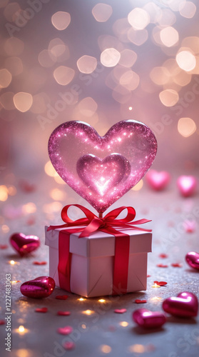 Stunning Present Box with Glittering Heart Ornament Resting on a Shiny Pink Background wallpaper aesthetic love inspiration