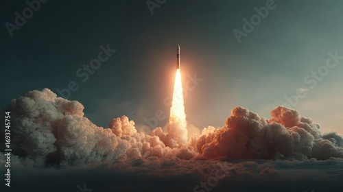 Stunning Rocket Launch with Powerful Flames, Smoke, and Clouds Inspiring and Captivating Space Imagery for HighEnergy Campaigns.