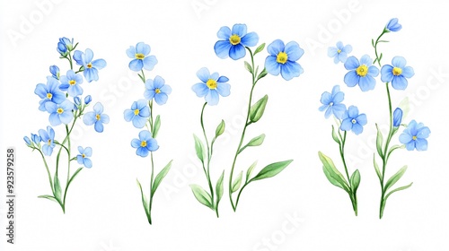 Stunning Set of Tender Forget Me Not Flowers on White Background