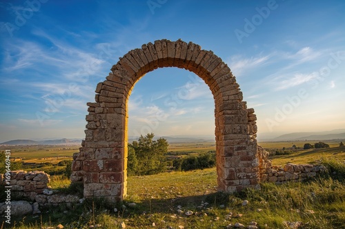 Stunning stone archway amidst the ruins of a deserted old settlement