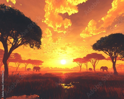 africa, savanna, majestic, horizontal, safari, sunlight, photo, photo, awe, horizon, giraffe, silhouette, stunning, wildlife, dusk, idylli, vibrant, mammal, peaceful, plain, serene, cloudscape, tranquil, calmness, wilderness, dramatic, gold, scenery, warm, colourful, elephant, sunrise, african, colours, exploration, solitude, exotic, herd, hill, wallpaper, conservation, desert, panorama, panoramic, shadow, standing, twilight, walking, ai