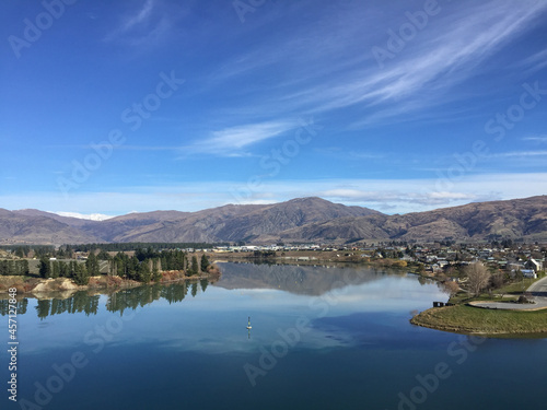 Stunning view of Lake Dunstan near the town of Cromwell, Otago region of New Zealand. - use for background in nature and relaxing concepts.