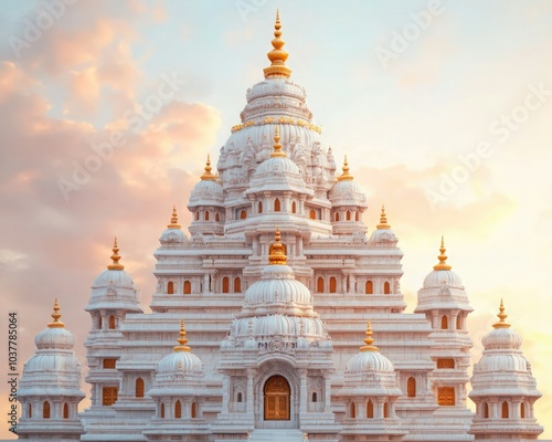 Stunning white temple with golden accents, set against a vibrant sky. A breathtaking architectural masterpiece in serene surroundings.