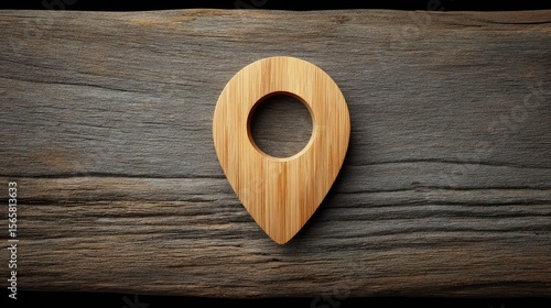 Stylish bamboo location pin placed on textured wooden surface, symbolizing navigation, travel, and precision in a unique and natural setting