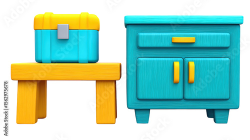 Stylish blue and yellow nightstand with drawer, perfect for modern bedroom storage