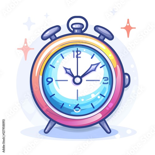 Stylish cartoon alarm clock with a colorful gradient design, featuring a blue and pink color scheme.