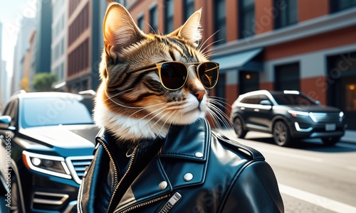 cat, leather, sunglasses, stylish, urban, fashion, street, cool, trendy, felino, city, modern, sleek, confident, chic, strut, hip, automotive, casual attire, attire, metropolitan, edgy, suave, personality, charisma, attitude, bold, fashionable, coolness, contemporary, animal, portrait, scene, dynamic, lively, pattern, captivating, unique, quirky, playful, adventure, downtown, glamour, charme