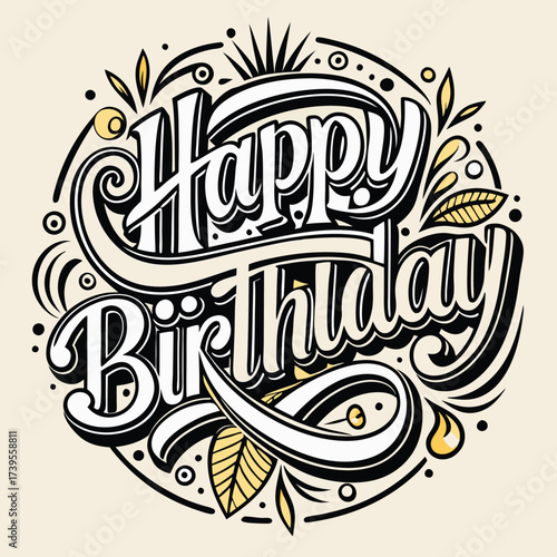 anniversary, art, artwork, birthday, black-and-white, calligraphy, card, celebration, celebratory, circular, colours, creative, curve, decorative, design, dot, elegant, event, festive, festivity, flourishes, fun, graphic, graphic design, greeting, greeting card, hand-drawn, handwritten, happy birthday, illustration, image, invitation, joyful, leaf, lettering, message, modern, occasion, ornate, positive, retro, stylish, swirl, text, typography, vector, vintage, wishes