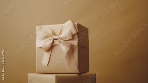 Stylish Craft Paper Gift Box with Bow on Beige Background, Perfect for Celebration or Birthday Party Generative AI