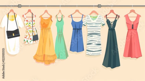 Stylish Fashion Women Clothing on Clothes Hanger Display
