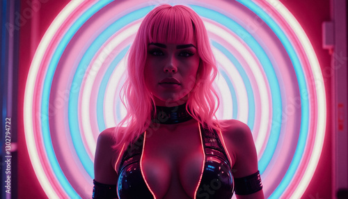 model, neon, light, pink, hair, fashion, beauty, edgy, vibrant, colourful, female, glamour, portrait, studio, creative, visual, art, haircut, make-up, accessory, shiny, bikini, bold, futuristic, glow, atmospheric, night, expression, styling, photo, contemporary, emotional, colours, scene, feminine, striking, lighting