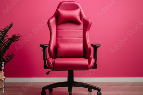 Stylish pink gaming chair in modern interior.